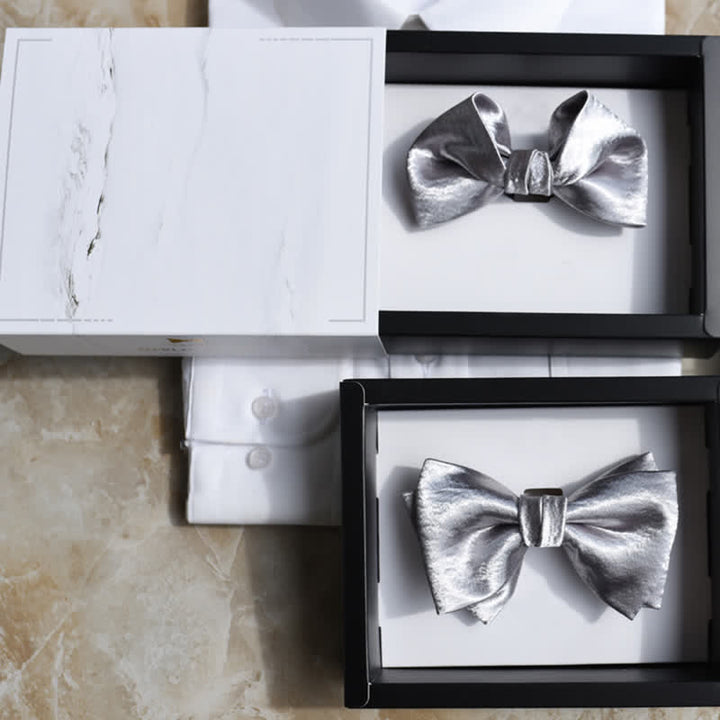 - Lucirás como un millón de dólares con pajaritas de color gris plateado brillante.
