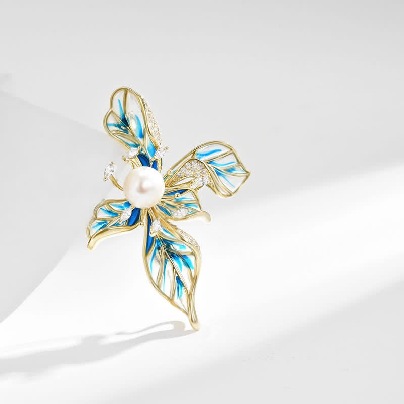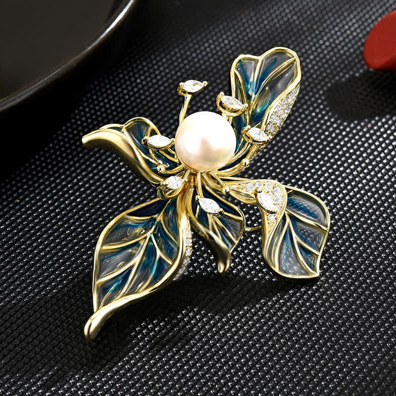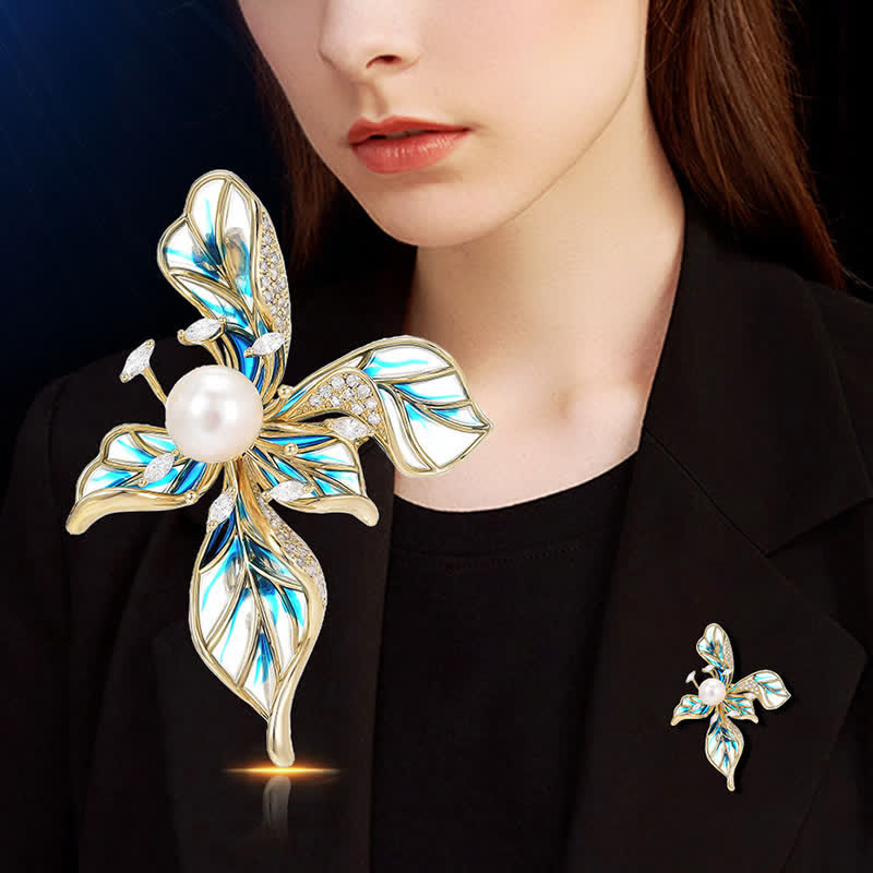 - El broche Iris consta de varias hojas extendidas con perlas engastadas en el centro.