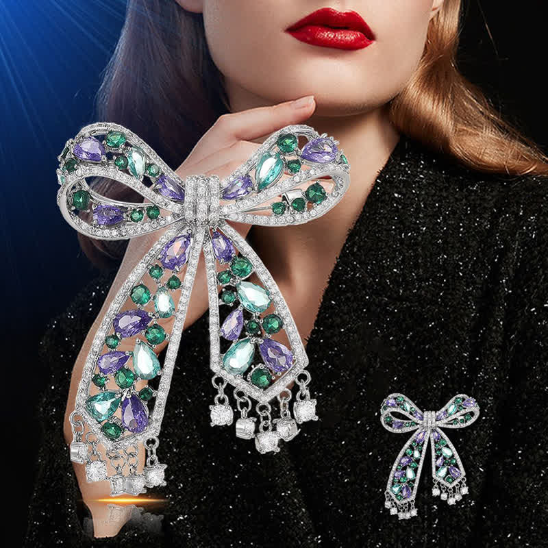 - Broche de moda con forma de lazo y borla, llamativo y elegante.