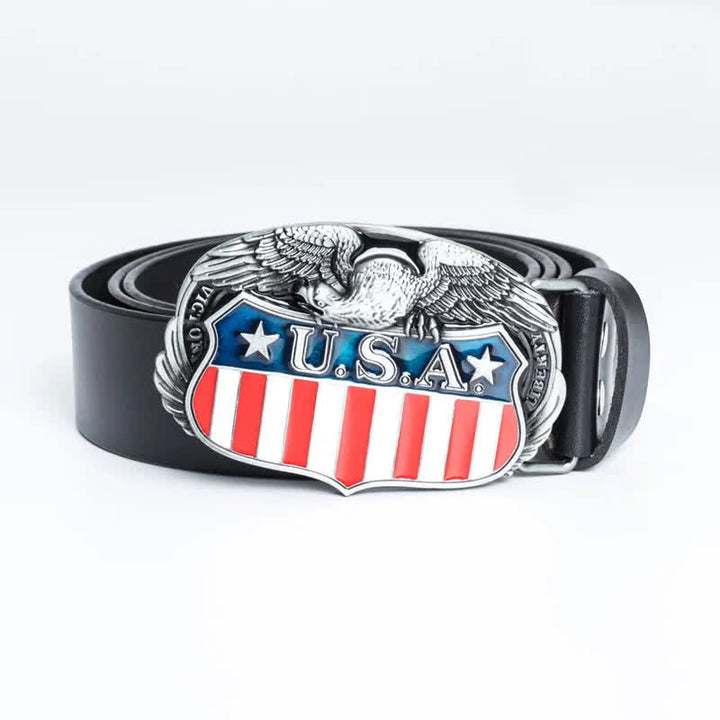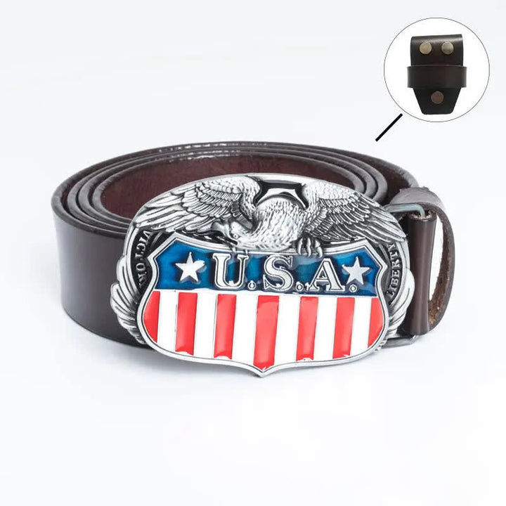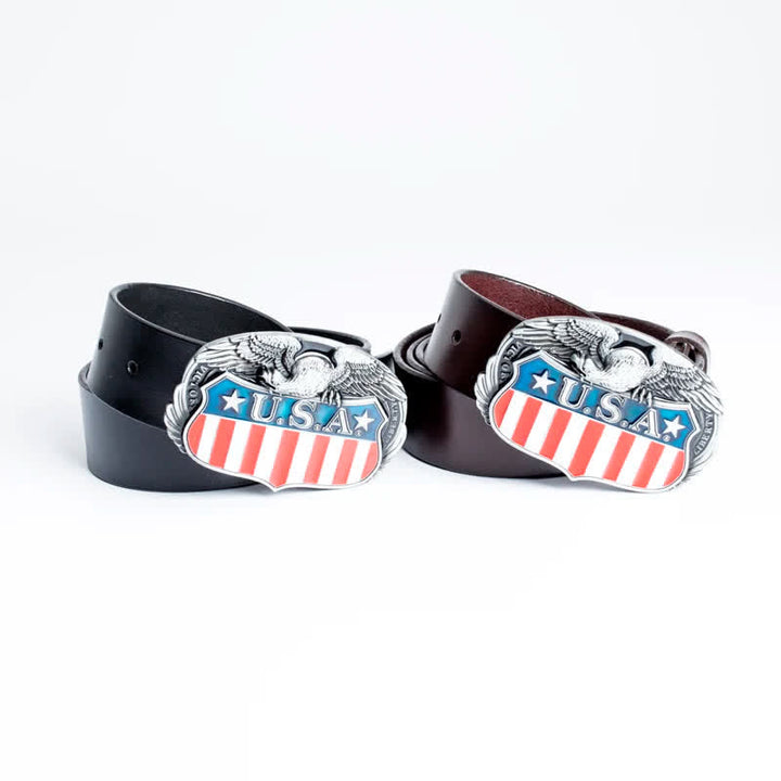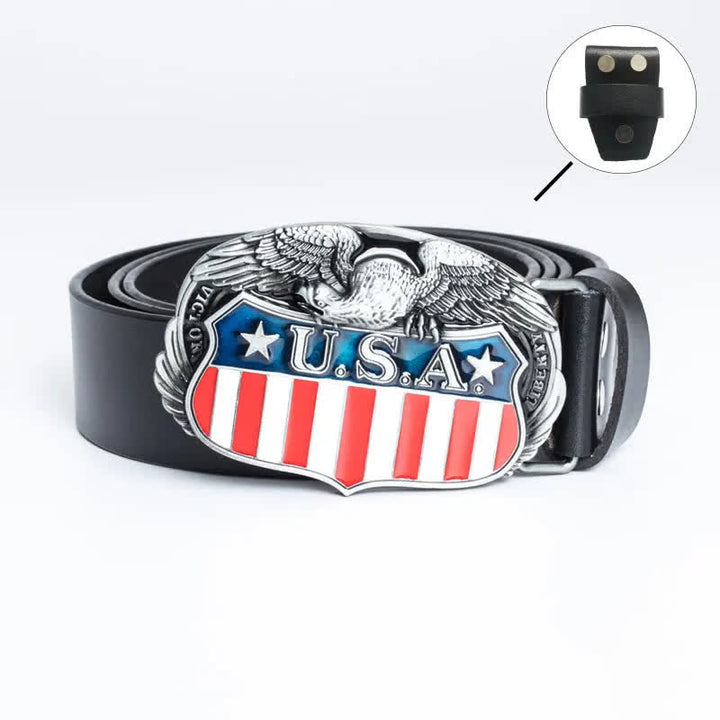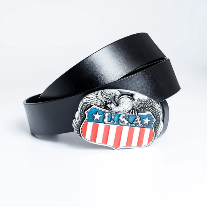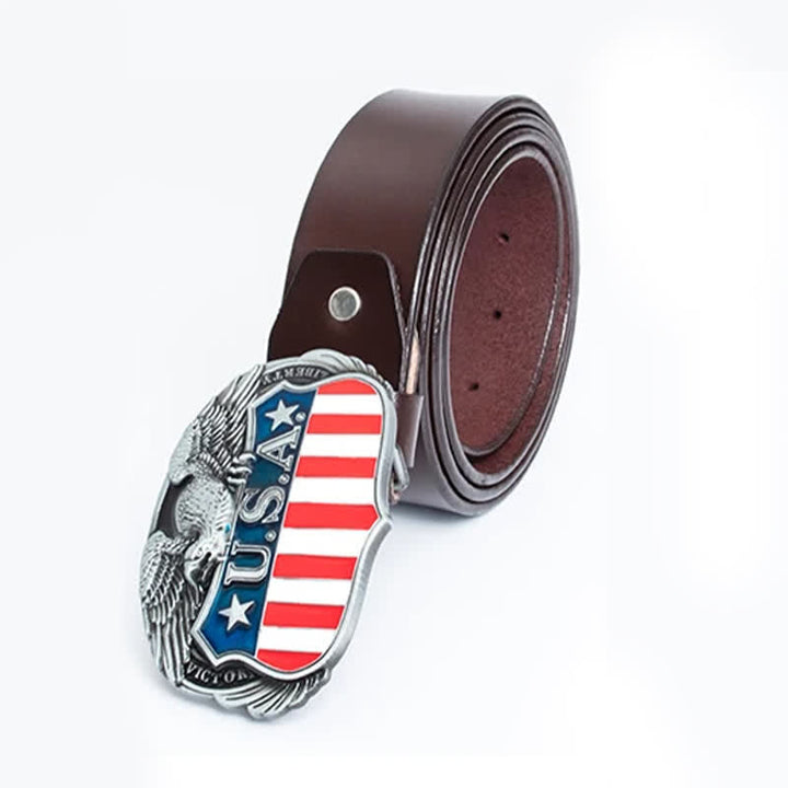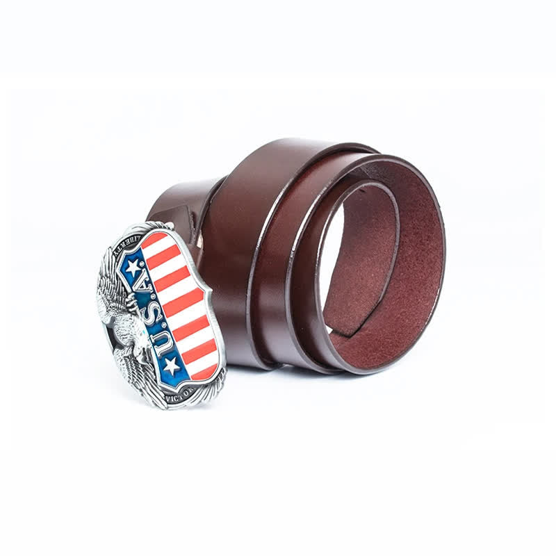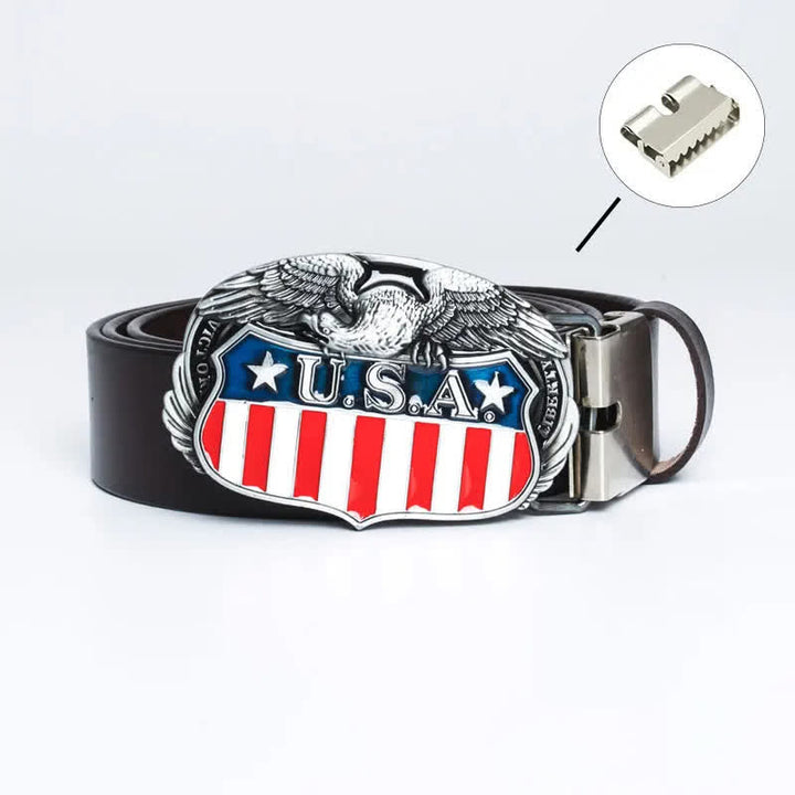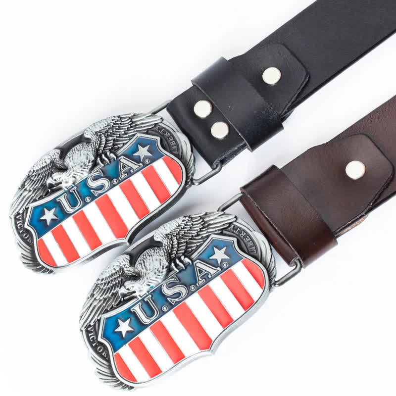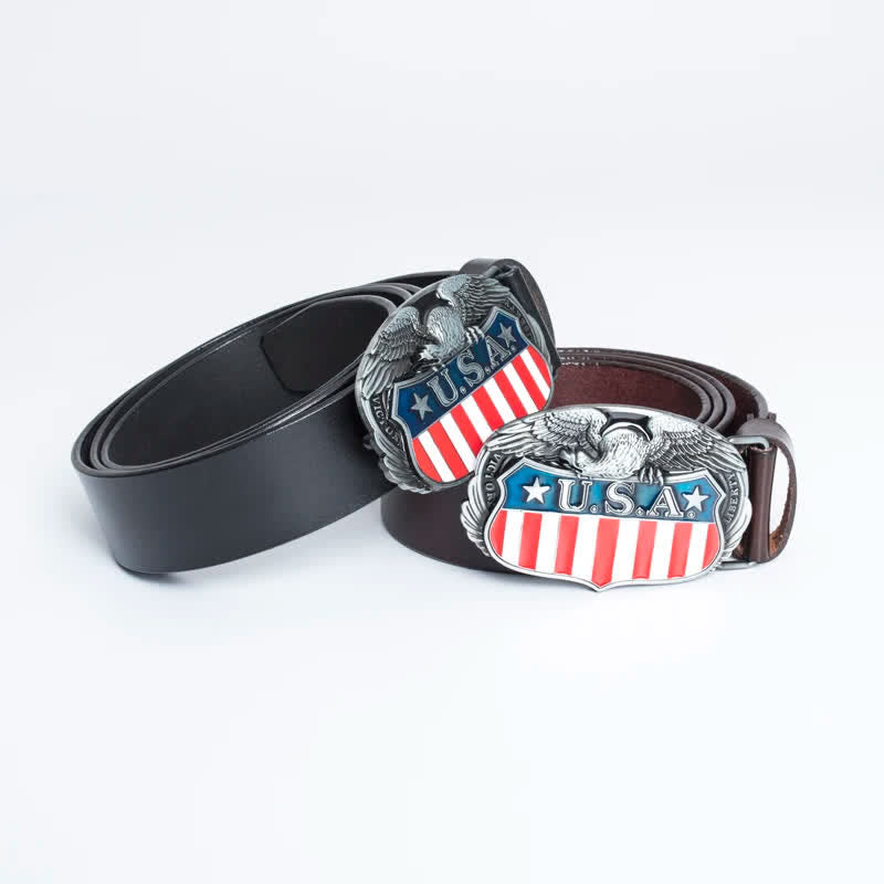 Es muy atractivo llevar una hebilla de cinturón con la bandera estadounidense y un diseño de águila en el cinturón. Cuero de alta calidad, flexible y duradero, resistente y resistente a la fricción.