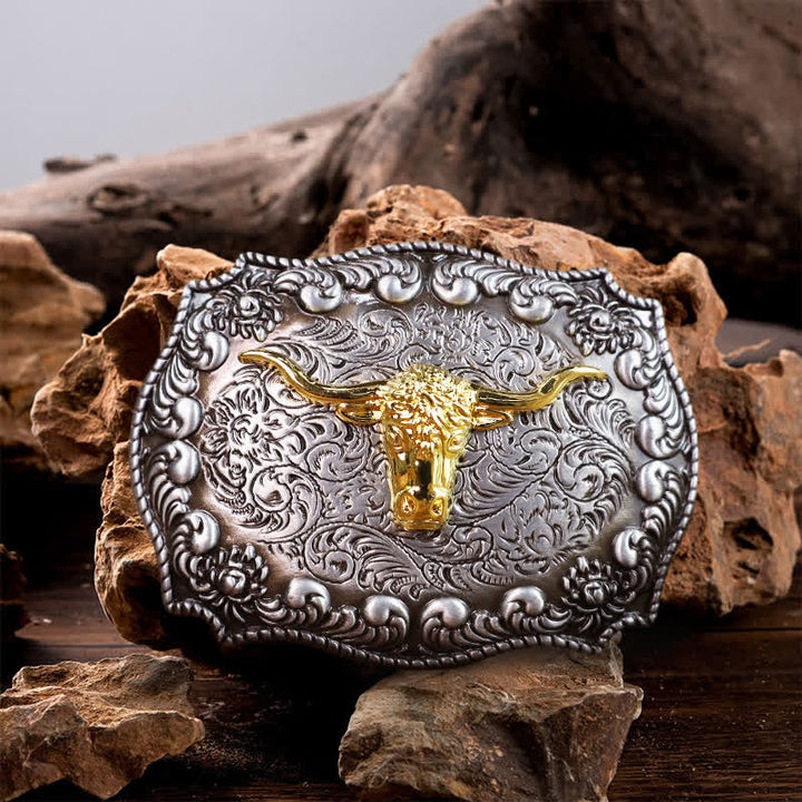 El tono plateado envejecido tiene volutas y en el centro hay un cuerno largo de búfalo. El material de aleación de primera calidad garantiza que esta hebilla sea duradera y resista el paso del tiempo.